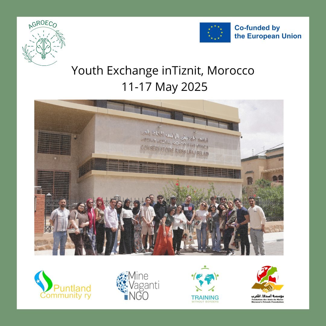 We’re delighted to share highlights from the AGROECO Youth Exchange, hosted by Morocco’s Friends Foundation and coordinated by Puntland Community ry (Finland) within the framework of the AGROECO project, co-funded by the European Commission through the Erasmus+ Programme.