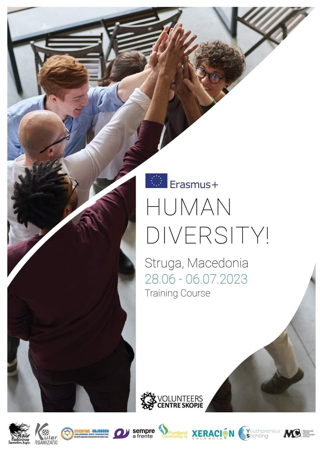 Today, we began activities of the Erasmus+ training course "Human Diversity!" in Struga, Macedonia!From the 28th of June until the 6th of July participants from Macedonia, Finland, Slovenia, Netherlands, Denmark, Poland, Spain, Romania, joined forces to learn more about and promote inter-religious cooperation, respect for...